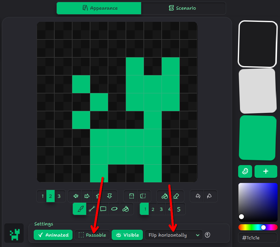 You can also change its movement behavior to flip horizontally, or, if you're making a top-down game, make it rotate. This will ensure the critter will look in the direction it moved last.